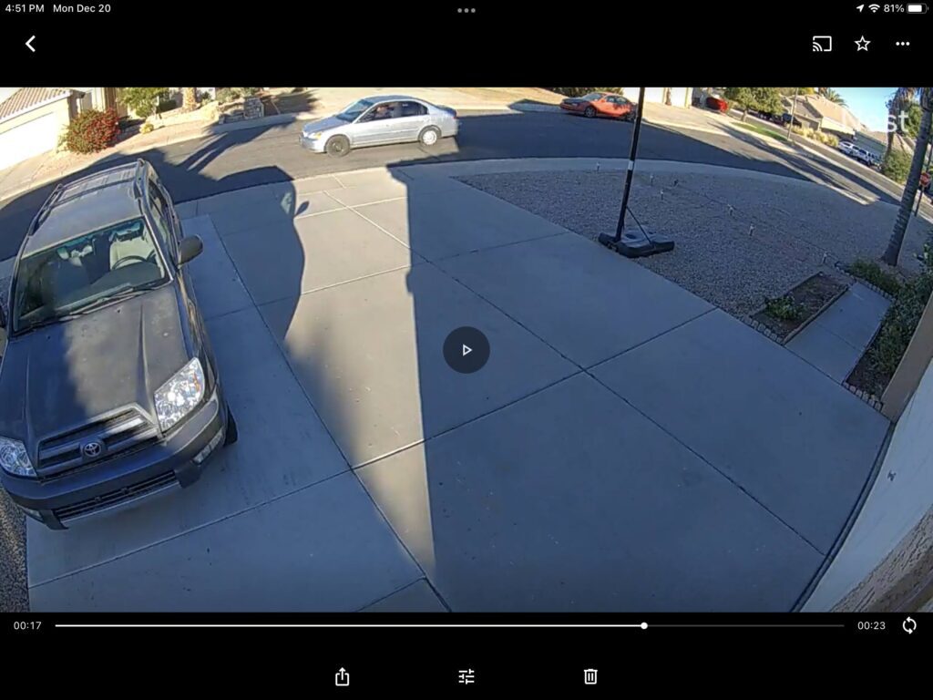 On December 20 at 3:45pm, a porch pirate who we will call “Jack Fishfood” stole packages from a house near Cooper and Ray in Gilbert. The criminal was in a silver Honda sedan.